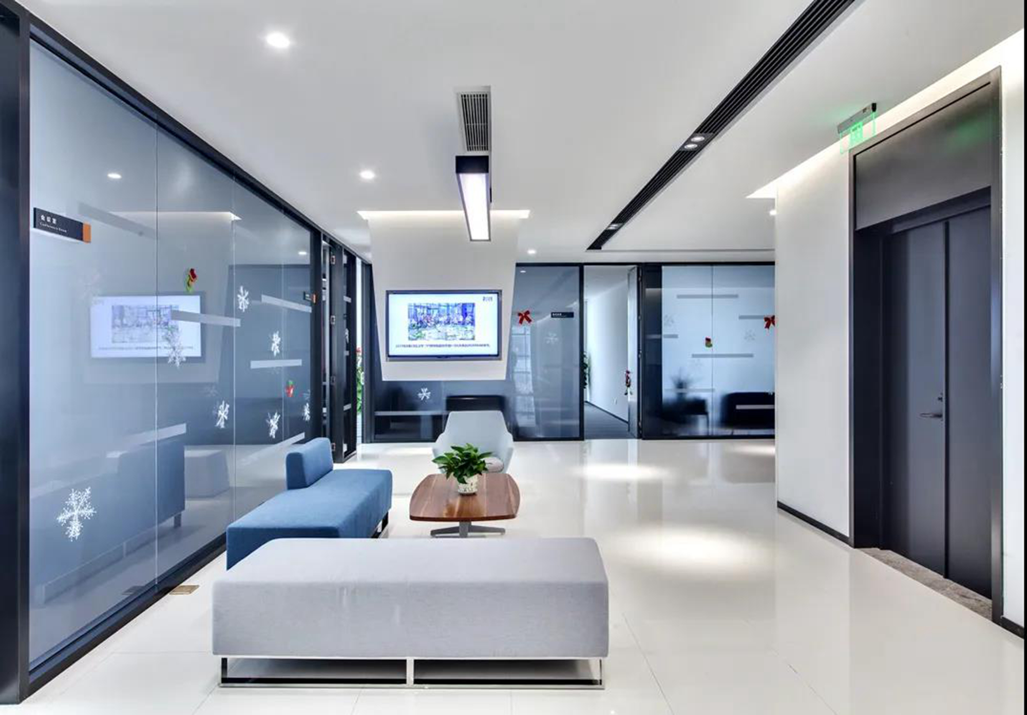 延續建筑脈絡的元素,運用動態流動的設計手法營造出層疊變換的“峽谷”形態,深淺不一的“盎然綠意”串聯起不同的場景,給予訪客“山川懷谷”般靈動的游玩體驗;將柔和的線條滲透于各空間,讓水之意向以抽象的方式回歸空間,行走于墻面,流淌于天花,似靜似動。